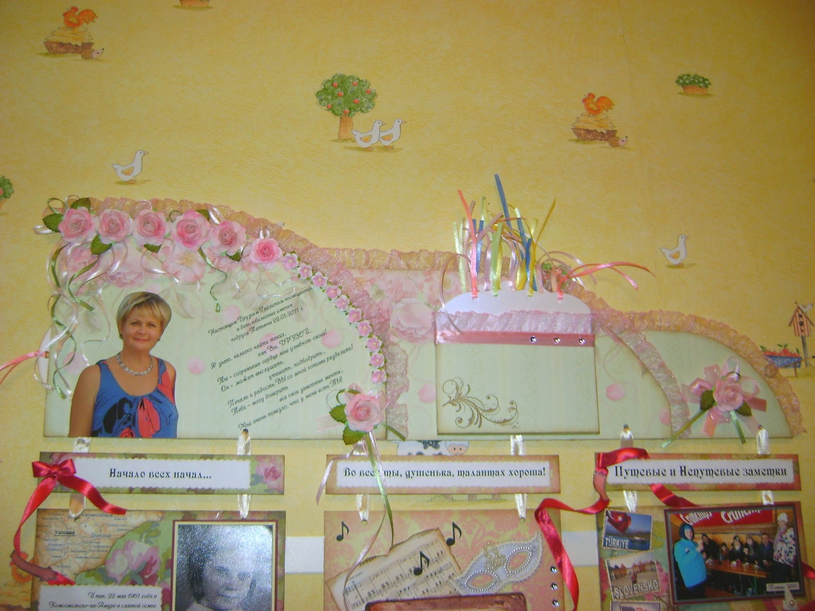 Стенгазета на заказ для близкой подруги к юбилею. Из всех моих работ эта, пожалуй, самая сложная. К тому же как всегда помимо замысловатых условий задачи (в том числе возможность транспортировки), сжатые сроки и бессонные ночи. |